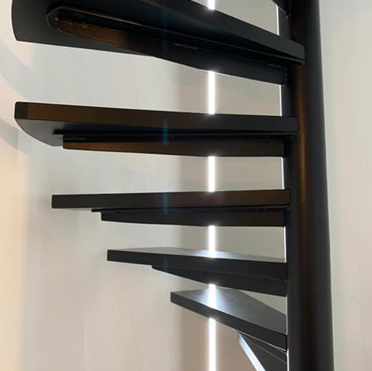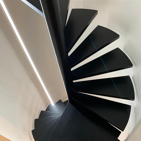 WAUW! In deze traphal hebben ze zo pas een ledstrip geplaatst. Het schilderwerk komt nu nog beter tot zijn recht! Aarzel niet om ons te contacteren voor een offerte. 🎨🖌️